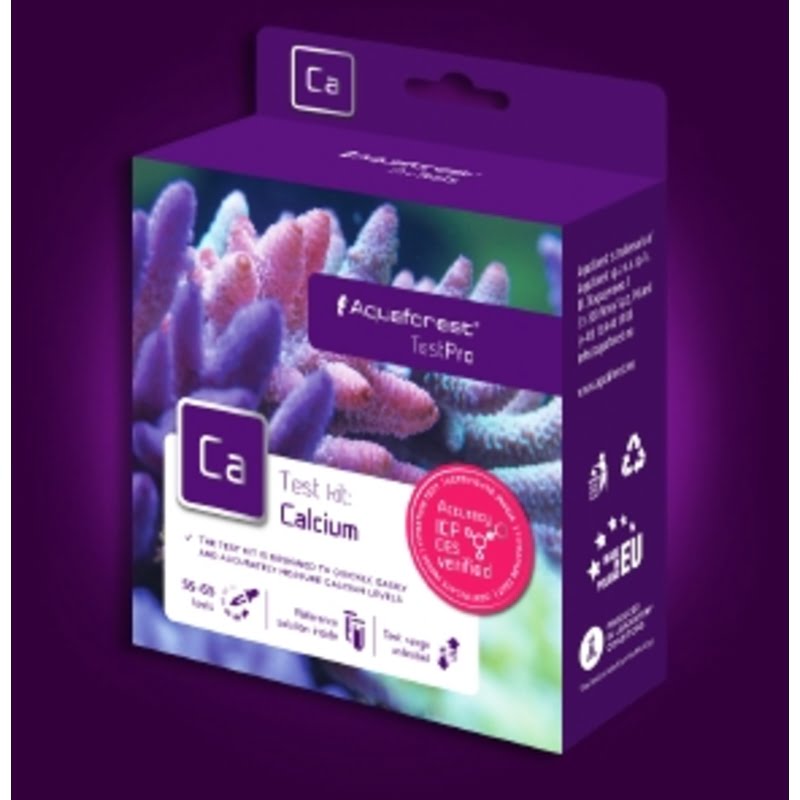 Aquaforest TestPro Calcium is designed to quickly measure the concentration of Calcium in marine water. Calcium plays an important role in many biological processes, e.g. takes part in the construction of hard coral’s calcium carbonate skeleton. Calcium levels should be analysed regularly, together with other critical water parameters like Alkalinity and Magnesium. Recommended Calcium level should be maintained in the range between 400-450 mg/l (ppm). Test Kit contains sufficient reagents to perform approx. 55-60 separate tests within that range.