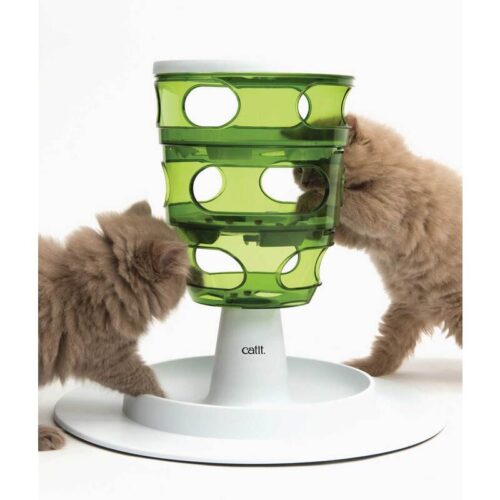 The discs inside the Catit Senses 2.0 Food Tree can be rotated to allow for different treat sizes. Did you know that you can also insert small toys into the Food Tree Add even more variety by changing the location of the Food Tree inside your house.