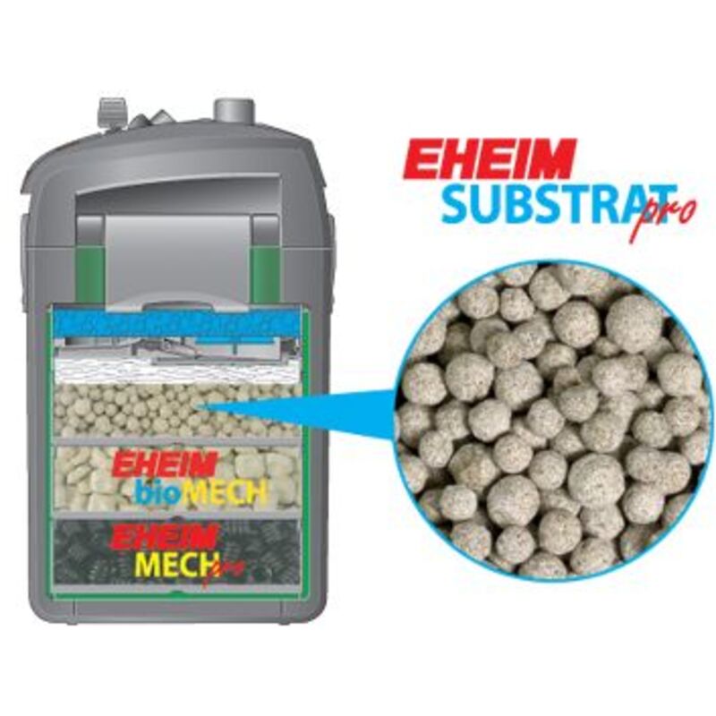Optimized bio-filter medium with perfect volume usage, long intervals between cleaning and top decomposition performance. SUBSTRAT pro consists of pearl-shaped sintered glass. The spherical shape gives a high bulk density. Thus the whole of the volume in the filter (filter baskets or modules) can be utilized. Also the optimum surface of the beads provides intensive colonization of the important purification bacteria. Due to the high number of bacteria, peak nitrite loads are more easily reduced and the maintenance intervals of the filter material are longer. EHEIM SUBSTRAT pro is suitable for fresh and marine water, is washable and can be reused.