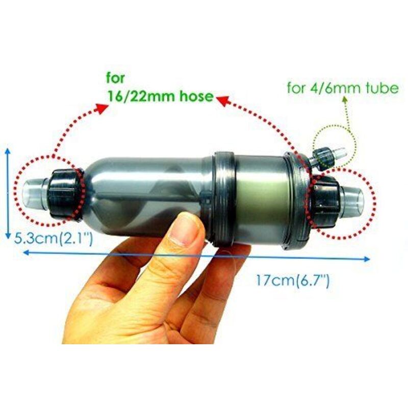 With transparent chamber, visible to check water flow and speed of CO2 diffusing through internal impeller.