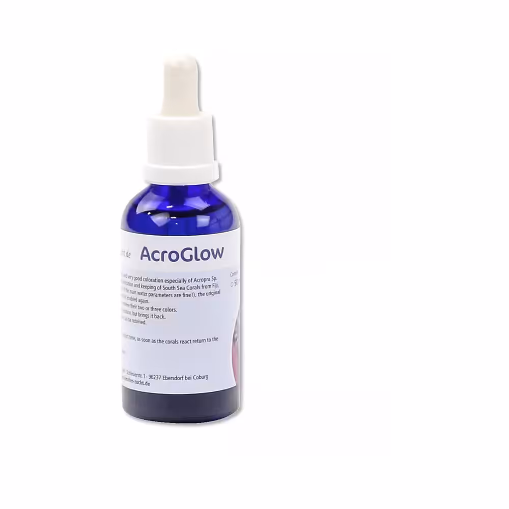 AcroGlow is a proprietary solution that helps enhance the color and health of Acropora Sp. With daily dosing, the coral's original colors will begin to appear again, while maxamizing polyp extension and response. AcroGlow greatly enhances the yellows in corals too!