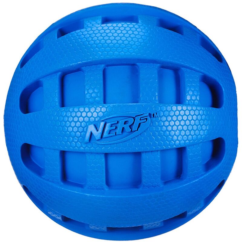 The NERF DOG 4 inch Checker Squeak Ball will entertain your dog for hours on end! The durable rubber body stands up to extended chewing and makes an interactive squeaking sound that dogs love. Plus it has a textured hexagon pattern that makes it easier to grip for both of you! Great for toss and fetch, or solo play sessions.