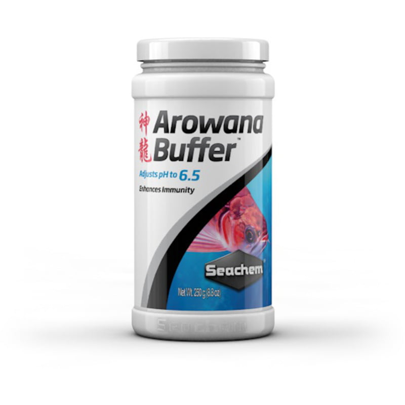 Arowana Buffer adjusts pH to 6.5 from either a low or high pH and maintains it there for 2–4 weeks. It safely softens water by precipitating calcium and magnesium. It also improves the ability of arowanas to resist infections. It is the buffer of choice for conditioning water for Asian Arowanas.