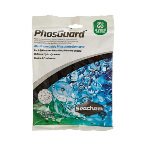 PhosGuard rapidly removes phosphate and silicate from marine and freshwater aquaria. Although PhosGuard is effective in both fresh and marine water, it will operate better in sea water and the need for it is better defined in sea water. It is not recommended for phosphate buffered freshwater (PhosGuard would remove the buffer until saturated). PhosGuard is highly porous and bead-shaped to promote easy water flow through and around it, thereby increasing both its efficiency and capacity.