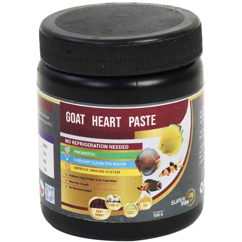 Goat Heart is a lean muscle. We use moderate amount of goat heart in our feed (3%) to ensure optimum nutrition and protein is provided to your fishes. Mammal heart is used by fish keepers from a longer time to provide ideal nutrition to fishes. It improves immunity, coloration along with growth.